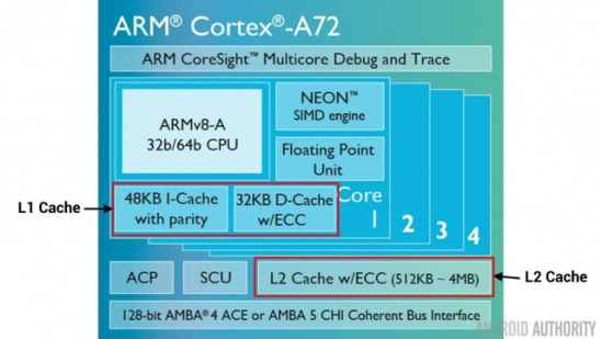 Bộ nhớ đệm L1 và L2 trên chíp ARM Cortex-A72.