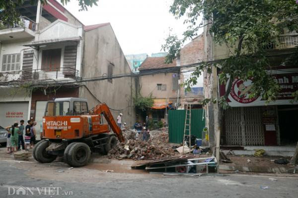Trong ảnh có thể nhìn thấy rõ phần móng của ngôi nhà 41 Cửa Bắc đào sâu, khiến tường nhà 43 Cửa Bắc nghiêng hẳn sang một bên.