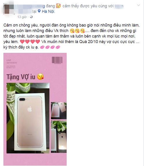 Facebook Việt sáng nay (20/10) ngập tràn status (dòng trạng thái) khoe quà 20/10 của chị em phụ nữ. Trong đó, có những món quà "khó đỡ" khiến dân mạng bất ngờ và có cả những món quà thiết thực được chị em đón nhận trong niềm vui sướng, hãnh diện.