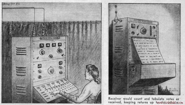 Kỹ sư điện Alfred N. Goldsmith là người đã phát minh ra hệ thống máy móc này. Chúng giúp gửi tín hiệu radio từ các hộ gia đình tới trung tâm thu phát vô tuyến trung ương để lập bảng kết quả. Tạp chí Radio-Craft thậm chí còn đăng tải những phác họa đầu tiên mô tả hình dáng của “máy biểu quyết tại nhà” và “trạm máy tính trung tâm thu nhận kết quả”.