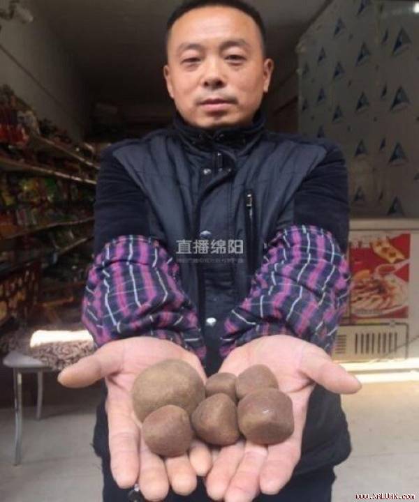 Trần Dũng, chủ một cửa hàng thịt dê ở thị trấn Tháp Sơn, huyện Tam Đài, tỉnh Tứ Xuyên, Trung Quốc, phát hiện 6 hòn "dương bảo" trị giá ít nhất 18.000 USD trong khi mổ thịt con dê cái gia đình nuôi, QQ hôm 4/11 đưa tin.