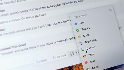 Một số tùy chọn để phản hồi nhanh email.