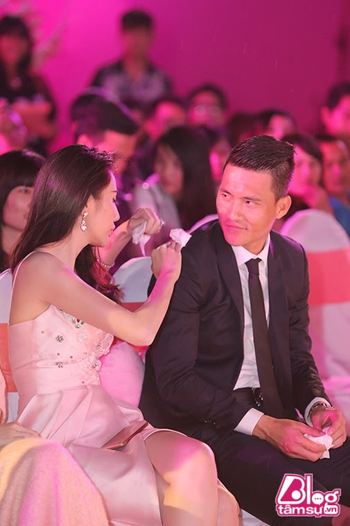 Vợ đi diễn đêm thì Công Vinh cũng tháp tùng rất ân cần