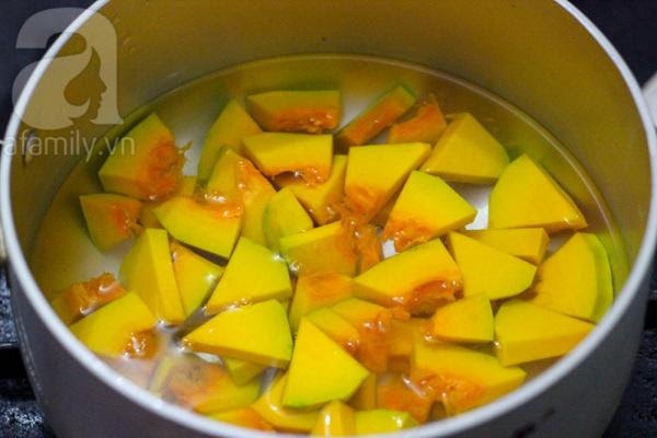 Cho bí đỏ vào nồi luộc chín nhừ.