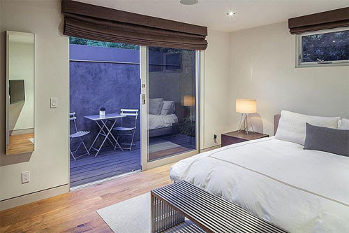 Phòng ngủ nhỏ với không gian thư giãn ngoài ban công.