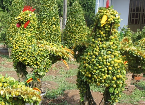 Vốn có thâm niên hơn 10 năm tạo dáng hình các linh vật độc đáo, ông Nguyễn Văn Vị (56 tuổi, xã Hưng Khánh Trung B, huyện Chợ Lách, tỉnh Bến Tre) cho biết, trong năm Đinh Dậu này, ông sẽ cho ra mắt sản phẩm cây quất có hình dáng con gà siêu "độc" với toàn thân bao phủ đầy trái quất (tắc).