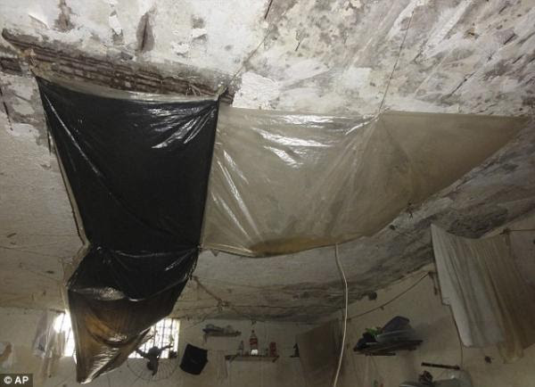 Trần nhà được che chắn bởi một vài tấm nhựa. Ảnh: AP