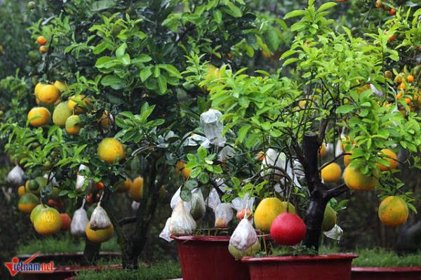 Hiện tại vườn của ông Giáp có hơn 60 gốc cây cảnh ngũ quả nhưng quá nửa trong đó đã có người đặt hàng từ cách đây nhiều tháng.