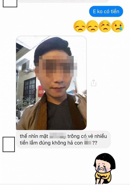 Bạn Bích Phương cũng đồng quan điểm: “Mới yêu đã thấy hiện tượng đào mỏ thế này. Bỏ đi. Đàn bà mặt dày. Thích gì thì móc tiền túi mà mua. Dùng tiền mồ hôi nước mắt của người khác là thế nào. Cứ lấy mặt ra mà đỡ. Không hiểu nổi luôn. Yêu thì yêu. Lo cho cái gì xứng đáng chứ kiểu lợi dụng thế này là không được. Tiền bạc phân minh ái tình dứt khoát.”
