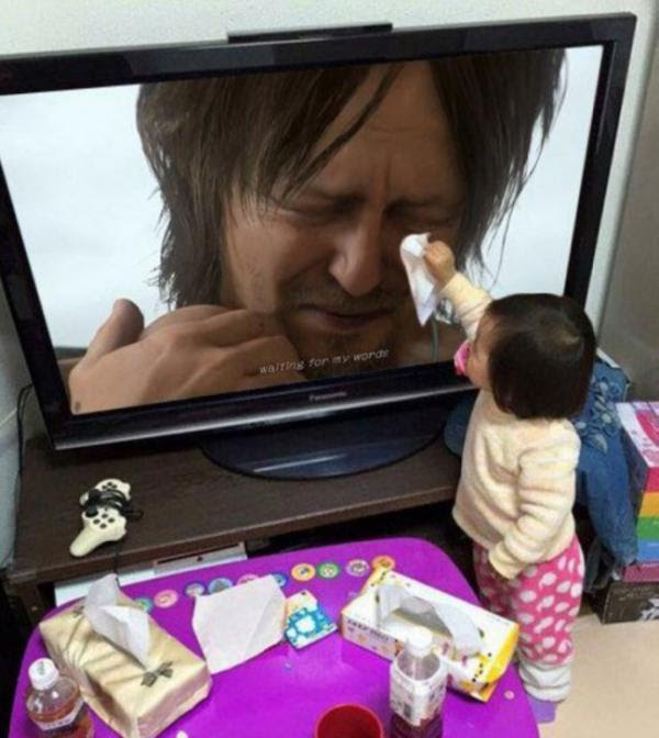 Đừng khóc nữa, để cháu lau nước mắt cho chú nhé.