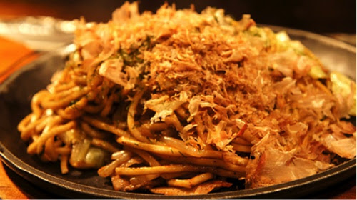 Món mì xào này của Nhật Bản có chút gì đó giống với mì xào của Trung Quốc nhưng điều khác biệt chính là ở việc món ăn này được làm trên bếp nướng và có cá bào khô phía trên.
