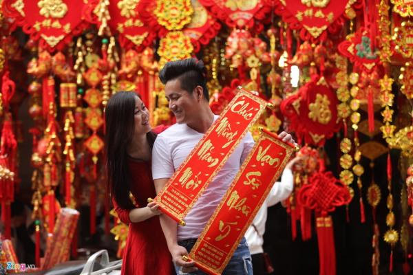 Đôi bạn trẻ tung tăng trên phố Hàng Mã.