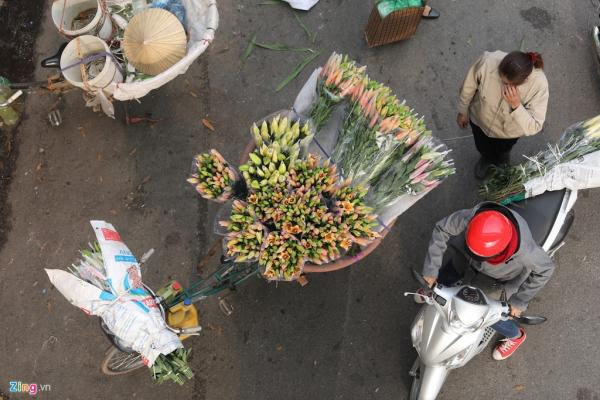 Chợ hoa Hàng Lược càng sát Tết càng đông đúc. Hoa tươi được mua muộn sẽ tươi lâu ngày hơn trong dịp năm mới.