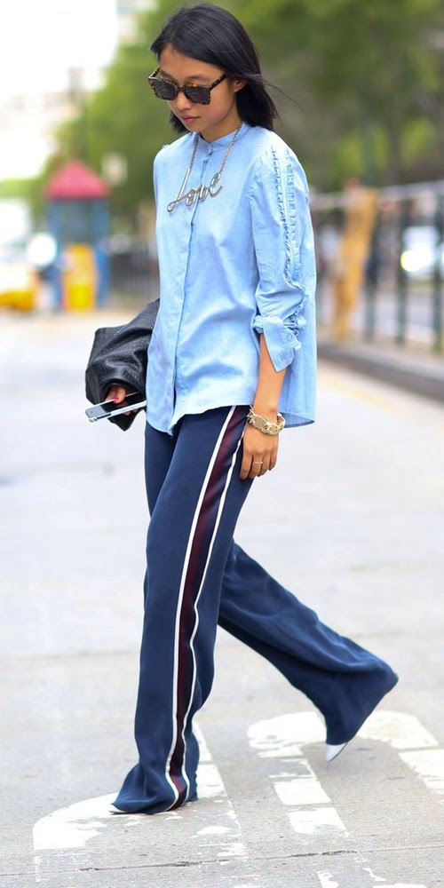 Blogger người Jamaica Tamu McPherson cực kỳ nữ tính và thời thượng khi chọn hai tông màu xanh hot nhất năm để mix cùng nhau. Chiếc áo sơ mi xanh baby blue với phần tay áo phối nơ lạ mắt được phối thành thục với quần ống rộng màu xanh lá nhạt bằng kaki. Blogger da màu cũng khéo léo để lộ đôi sandal platform với màu sắc cực ăn nhập với tổng thể. Cũng như blogger Charlotte Groeneveld, trong bức hình này, có lẽ ai đó sẽ nhầm lẫn Tamu McPherson với cô siêu mẫu nào đó chăng?