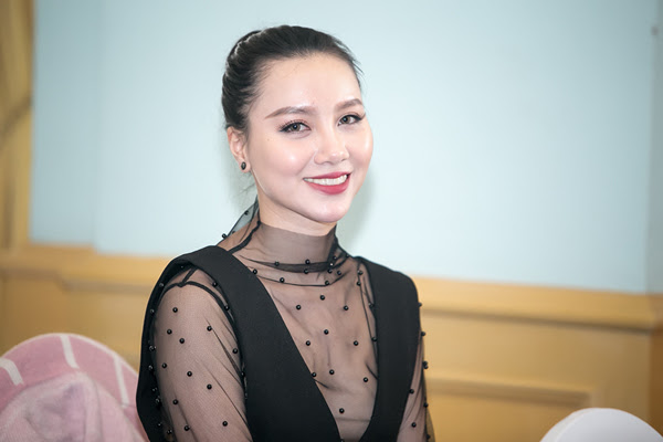 Trong lúc Chí Nhân ngồi trên bàn giao lưu với truyền thông, Minh Hà chọn một góc để theo dõi buổi họp báo. |