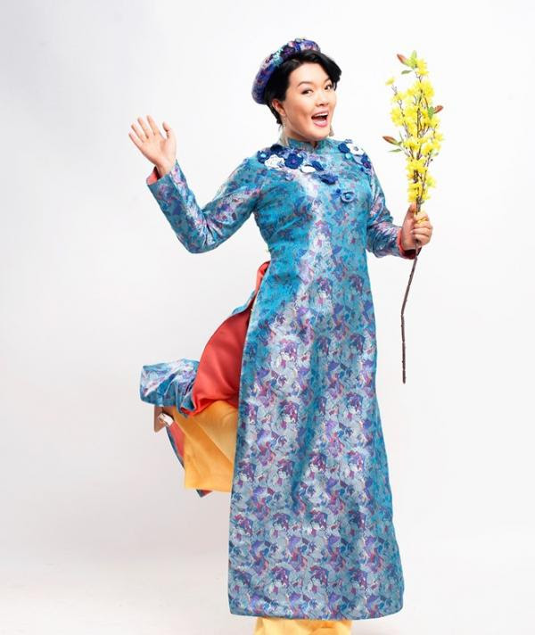Phương Trinh Jolie tươi tắn trong tà áo dài cách điệu. Trong phim Sắc đẹp ngàn cân, cô là đối thủ nặng ký của Minh Hằng.