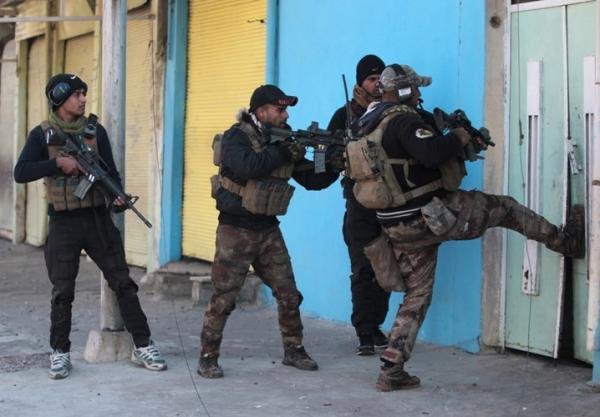 Một người lính đặc nhiệm Iraq đang tác chiến trên đường phố. Có thể dễ dàng nhận ra các đơn vị đặc biệt của quân đội Iraq nhờ trang bị hiện đại và đồng phục quy củ của họ chứ không "mạnh gì mặc nấy" như những người lính Iraq bình thường khác. Nguồn ảnh: Chosun.