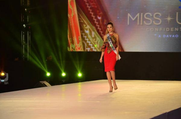 Tối qua 19/1, các thí sinh của cuộc thi Hoa hậu Hoàn vũ lần thứ 65 đã tham dự buổi trình diễn thời trang tại thành phố Davao, Philipppines. Họ khoác lên mình những bộ trang phục mang đậm nét truyền thống của Philippines kết hợp với những yếu tố hiện đại.