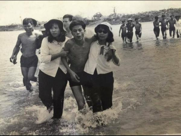 Nhà thơ Xuân Quỳnh (phải) ở sông Thạch Hãn, Quảng Trị (ảnh tư liệu do nhà văn Thu Huệ cung cấp)