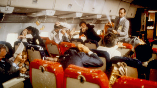 Thomas khoe ra hình xăm Pinocchio (nhân vật hoạt hình có mũi dài) trên vùng nhạy cảm của mình khi nói chuyện vui với những hành khách cùng chuyến. Trưởng đoàn bay phát hiện ra và thu hộ chiếu của anh.