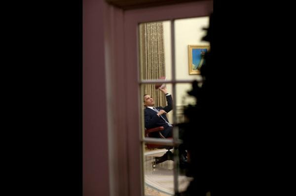 Nhiếp ảnh gia Nhà Trắng Pete Souza đã chụp được khoảnh khắc tổng thống Obama thư giãn sau những giây phút làm việc căng thẳng với quả bóng bầu dục tại phòng làm việc. Ảnh: White House.