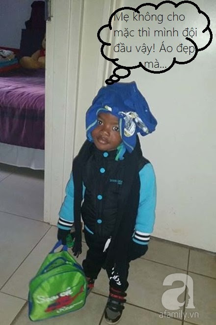 Áo đẹp thế này mà mẹ không cho mặc, thôi thì đội lên đầu cho đỡ phí vậy!