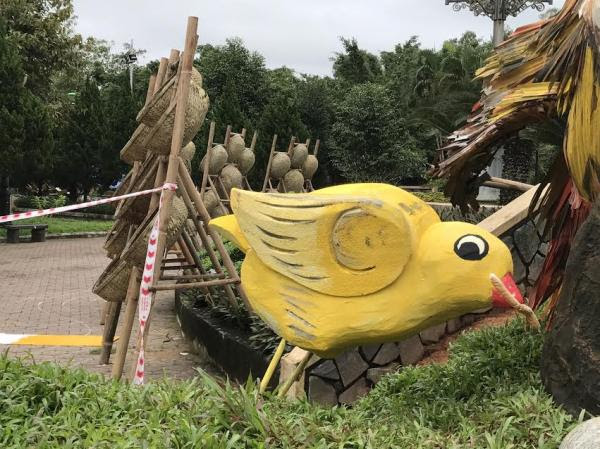 Hình tượng gà bố mẹ trang trí ở công viên Ba Tơ (tỉnh Quảng Ngãi) tương đối ổn, nhưng 3 chú gà con được nhiều người xem nhận xét "giống chim sâu hơn"...