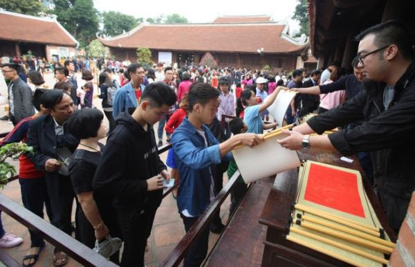 Hàng dài người xếp hàng xin chữ nhằm cầu một năm học hành, thi cử được thuận buồm xuôi gió.