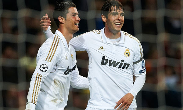 Hôm 8/1, khi C. Ronaldo khoe 4 Quả bóng vàng trước trận gặp Granada, Kaka và Cannavaro gửi lời chúc mừng qua video chiếu trên màn hình lớn. Siêu sao Bồ Đào Nha đặc biệt xúc động, rớm nước mắt khi nghe lời chúc mừng của đồng đội cũ Kaka. |