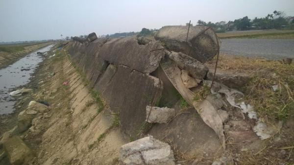 Thanh chắn xuống kênh B9 làm hư hỏng bờ kè, chắn dòng chảy, rất nguy hiểm cho người tham gia giao thông.