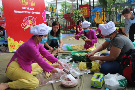 Công nhân nhà trọ tại quận Thủ Đức, TP HCM thi nấu bánh chưng, bánh tét
