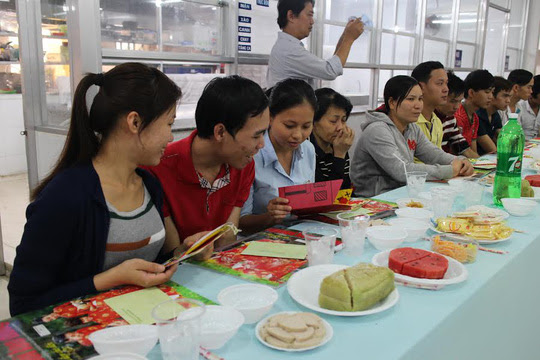 Chương trình “Ăn Tết cùng CN” do LĐLĐ quận tổ chức tại Công ty CP Thực phẩm Trung Sơn, Công ty TNHH Bút bi Bến Nghé dành cho 60 CN có hoàn cảnh khó khăn, không có điều kiện về quê đón Tết diễn ra trong không khí đầm ấm. Bữa tiệc tuy nhỏ nhưng cũng đủ các món ăn ngày Tết như bánh chưng, dưa món, củ kiệu, dưa hấu, mứt dừa, mứt gừng...