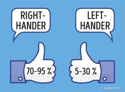 Hầu hết con người (khoảng 70 - 95%) là thuận tay phải và chỉ có một số ít người (5 - 30%) là thuận tay trái. Số lượng còn lại là thuận cả hai tay.