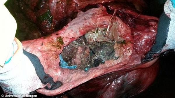 Các nhà nghiên cứu của ĐH Bergen vô cùng sốc khi phát hiện hơn 30 túi nilon và chất thải nhựa nằm sâu trong ruột của chú cá voi này.