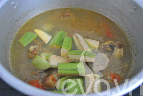 Bước 3: Xương ống rửa sạch, luộc qua cho hết bọt bẩn. Ninh nhỏ lửa. Ninh khoảng 30 phút khi xương nhừ thì đổ bát nước luộc ốc cùng vắt me vào đun cùng. Nêm nếm gai vị vừa ăn.