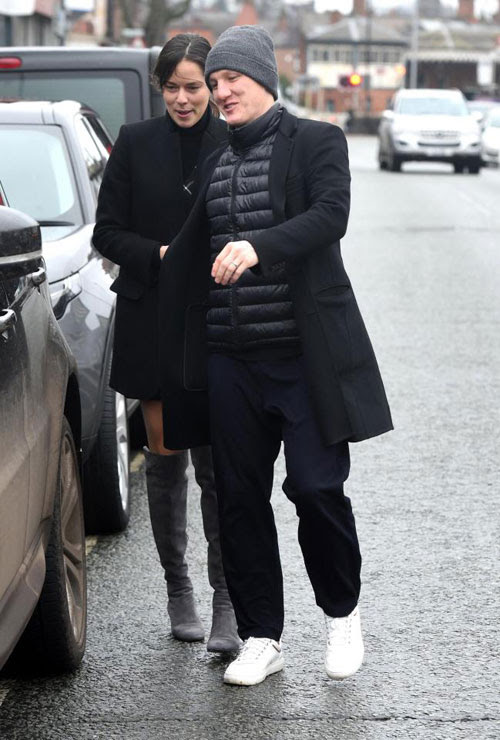 Vợ chồng Schweinsteiger bất ngờ gặp hai fan đặc biệt khi đi dạo tại khu Cheshire, Manchester, hôm đầu tuần.