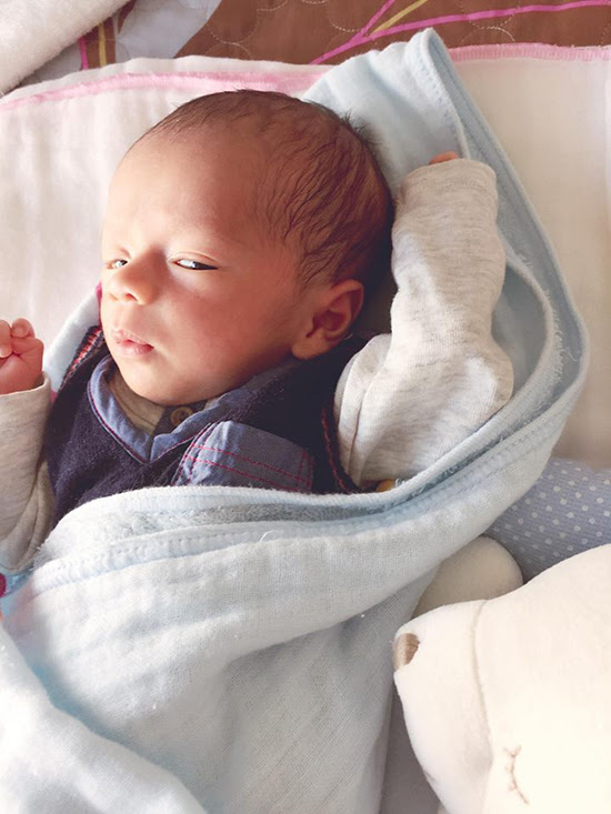 Hôm 9/2, Kỳ Hân lần đầu đăng ảnh rõ mặt con trai khi cậu nhóc được 7 ngày tuổi. |