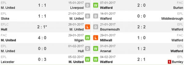 - Ở trận lượt đi trên Vicarage Road, MU để thua Watford với tỷ số 1-3.