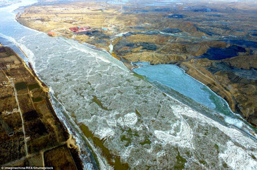 Nhiệt độ xuống dưới 0 độ C vào mùa đông đã khiến khoảng 20 km mặt nước trên sông Hoàng Hà ở Trung Quốc bị đóng băng.