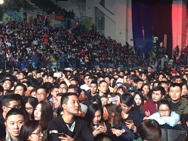 Thời tiết Hà Nội tối 26.2 khá rét, thế nhưng khán giả vẫn nườm nượp đổ về Sân vận động Quần Ngựa. Tình yêu nhạc rock của các fan đã bùng cháy, sưởi ấm đêm nhạc.