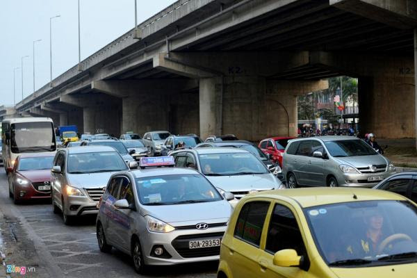 Lối rẽ từ cao tốc Pháp Vân - Cầu Giẽ vào đường Giải Phóng và hai bến xe Giáp Bát, Nước Ngầm bị ùn tắc một đoạn dài.