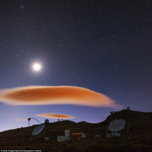 Hàng loạt đám mây màu cam xuất hiện trên trạm quan sát thiên văn tại La Palma ở quần đảo Canary, Tây Ban Nha.