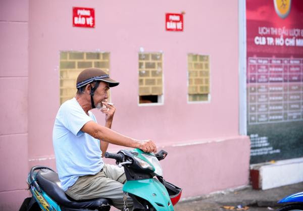Những lần U.23 hoặc tuyển Việt Nam thi đấu trước đây luôn diễn ra tình trạng khan hiếm vé, xếp hàng chờ mua vé nhưng lần này thì ngược lại. Một người xe ôm bình thản ngồi rít thuốc trước phòng vé vắng bóng người