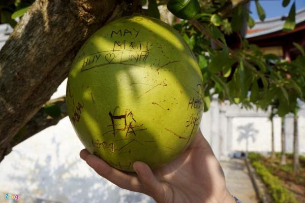 Tại khu vực quanh đền thờ, tồn tại những hình ảnh không đẹp khác như du khách vẽ bậy lên các quả đào tiên.
