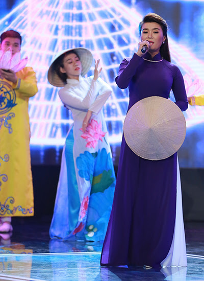 Diệu Nhi trong chiếc áo dài cách tân thể hiện ca khúc "Chị đi tìm em" đậm chất dân ca. Cô hát tròn trịa, không phô, chênh.