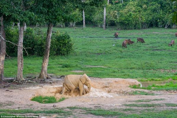 Con voi vàng là một trong khoảng 150 con voi rừng châu Phi quý hiếm đến thăm khu đất trống này, Daily Mail đưa tin ngày 1.2.