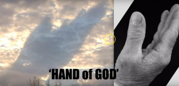 Nhìn một cách chi tiết, đám mây hình bàn tay có cổ tay, ngón cái, các ngón tay còn lại và tất cả tạo hình như kiểu nâng đỡ. Nguồn ảnh: ufosightingsdaily.