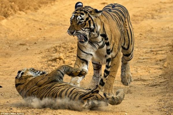 Có lẽ hổ đực con cũng đã từng bị mẹ dạy dỗ ác liệt như thế này nên nó đã nhận được bài học, không bao giờ động vào mẹ khi mẹ đang tức giận. (Nguồn Dailymail)