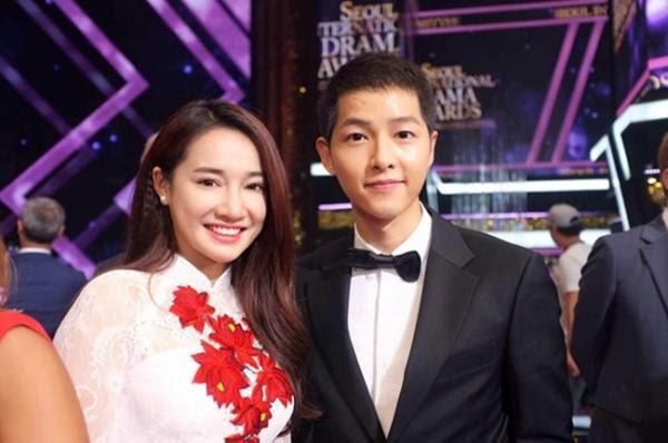 Nhã Phương cũng không thoát khỏi sức hấp dẫn của "soái ca quân nhân" Song Joong Ki. Trong một lễ trao giải ở Hàn Quốc, cô nàng hào hứng khi được gặp và chụp ảnh cùng trai đẹp xứ Hàn.