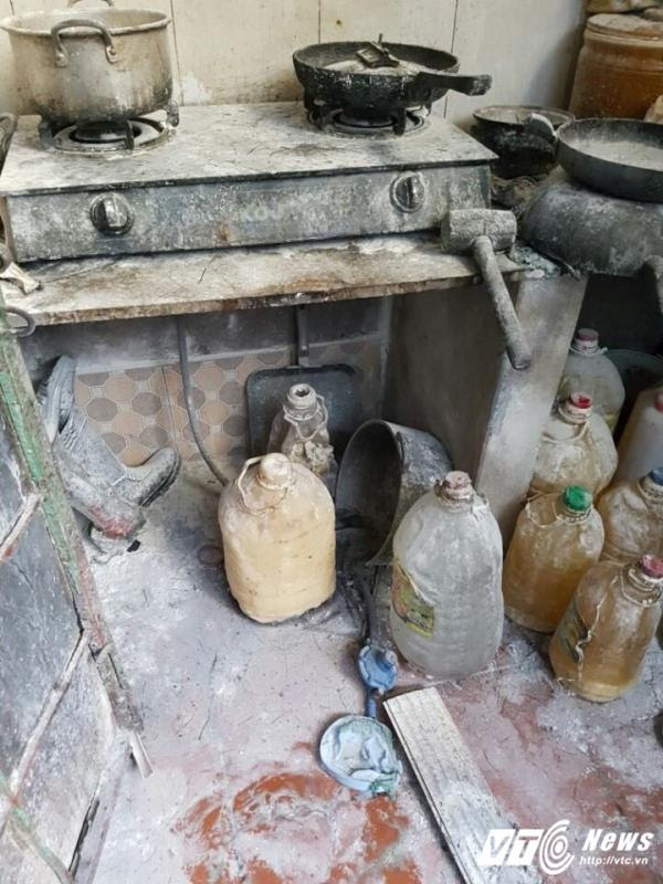 Tại hiện trường, nhiều vật dụng trong khu bếp bị xáo trộn, hư hỏng, bình gas bị cháy xém nằm giữa nhà.